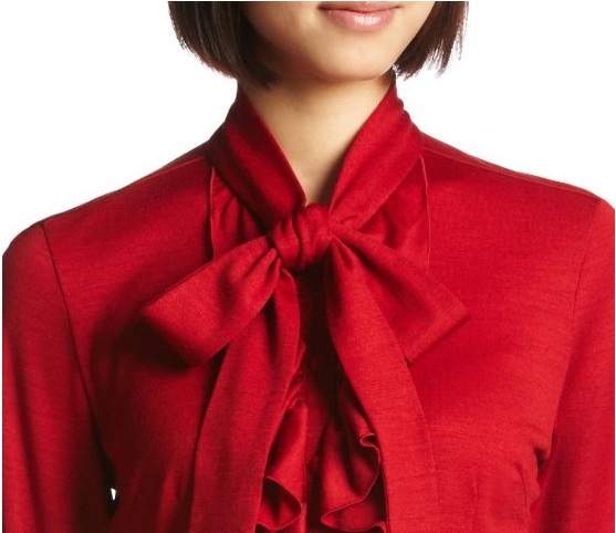 (ナラ カミーチェ)NARA CAMICIE ウォッシャブルウールジャージフリルボウブラウスの詳細へ